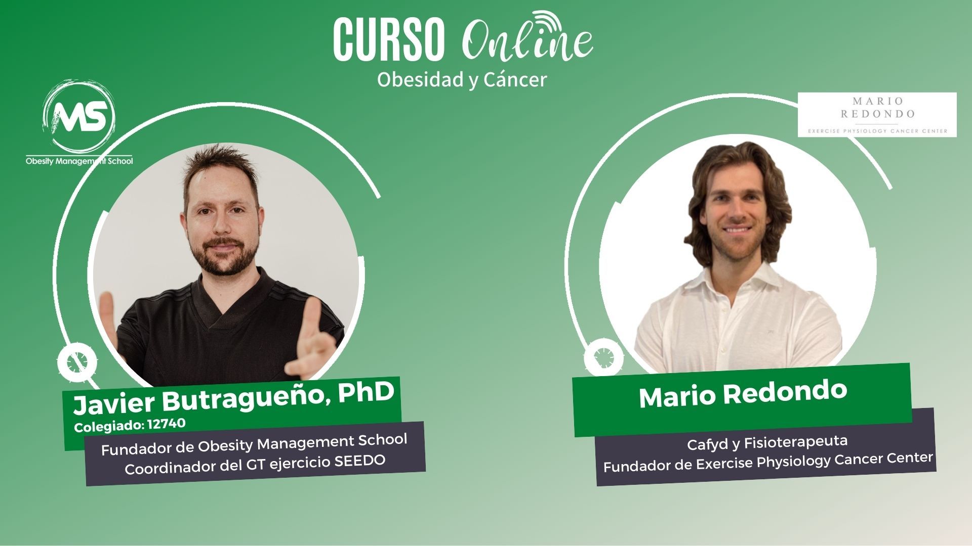Aprende de los dos mejores líderes del campo, Javier Butragueño, PhD y Mario Redondo, y transforma tu carrera profesional. Esta es exactamente la formación que nos hubiera gustado tener cuando comenzamos a trabajar con personas con cáncer y obesidad. Hemos creado un curso eminentemente práctico donde te enseñamos nuestra metodología de trabajo basada en evidencia científica y sobre todo en más de 15 años de experiencia enfrentándonos a pacientes con estas patologías y multitud de situaciones diferentes.